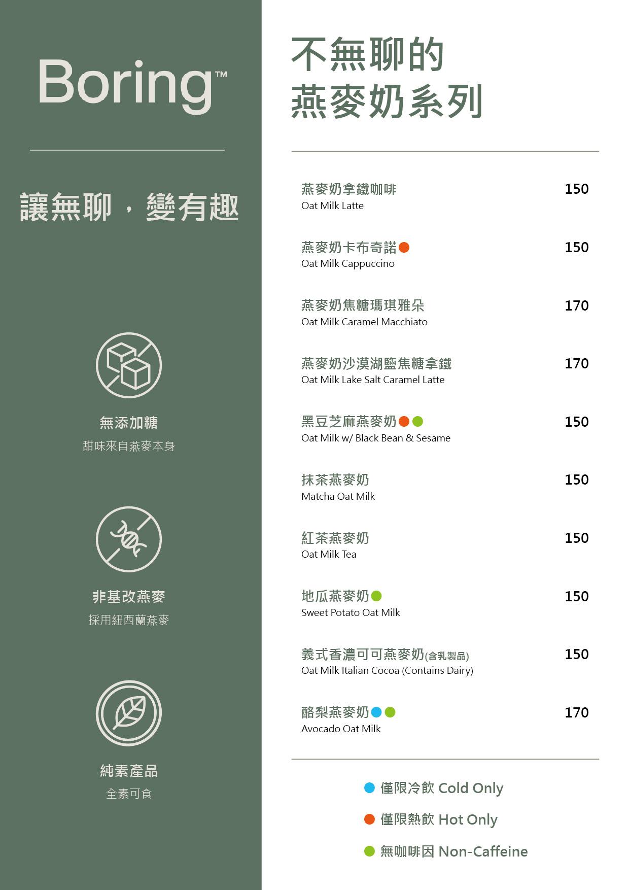 下次走進怡客時,不妨換個方式,點一杯Boring™燕麥奶飲品,說不定會遇到新的驚喜口味。