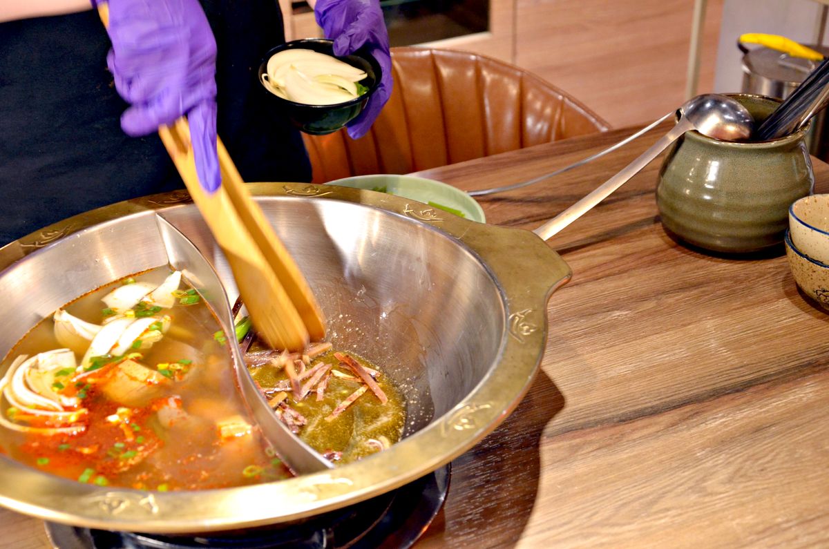 新竹石頭火鍋推薦!韋爐復刻食鍋巨城店 經典湯頭加蒜苗魷魚 溫和耐喝家常味