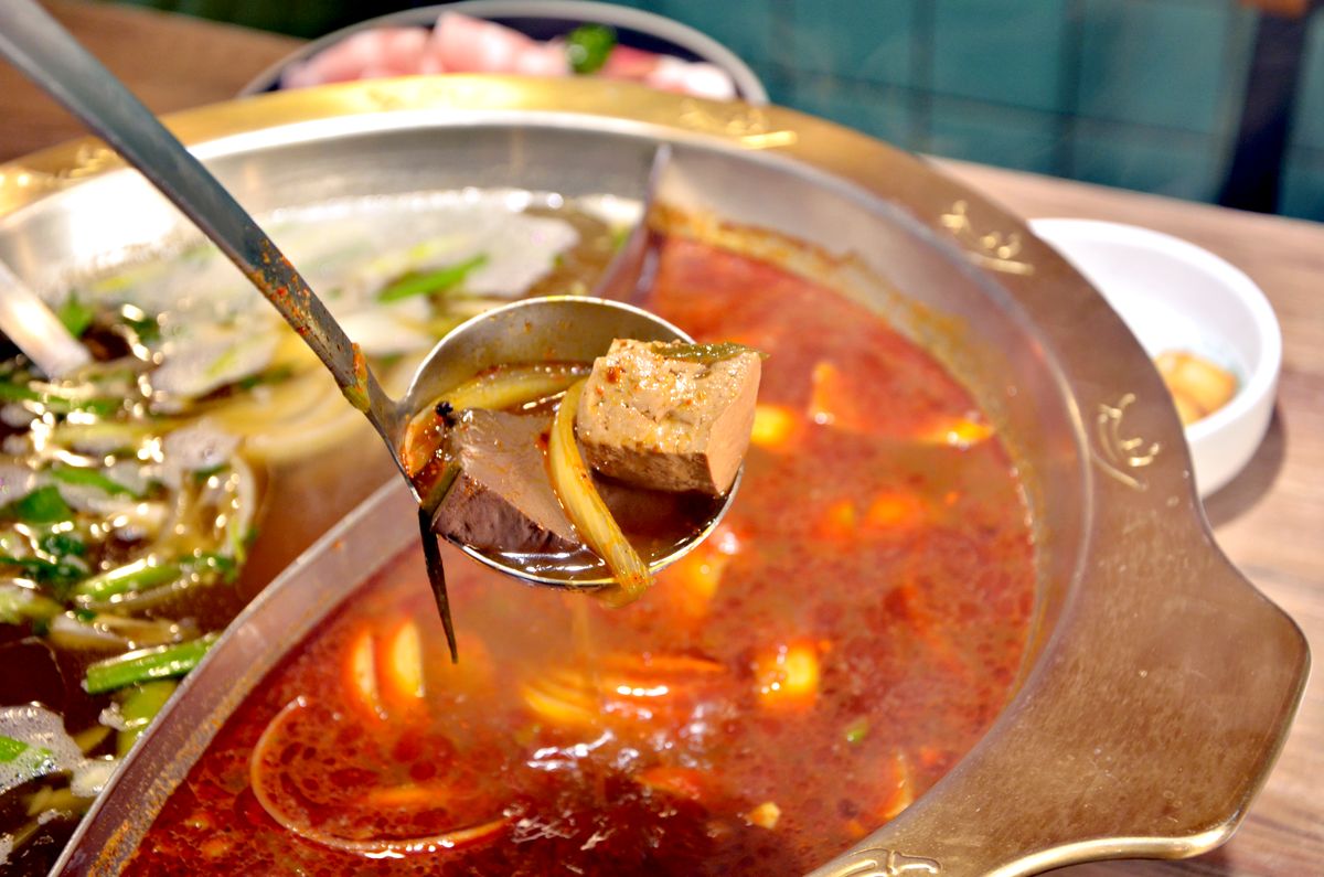 台式香辣鍋的辣不是那種會把舌頭鎖住的刺激,而是越煮越香的耐吃辣度。鴨血和豆腐原本味道比較淡,但放在鍋裡泡久一點之後,整個吸進辣香,吃起來滑滑嫩嫩的。不會太鹹,也不會油到膩,是那種吃起來會想配老油條的湯頭,很適合喜歡麻辣又想喝湯的人。