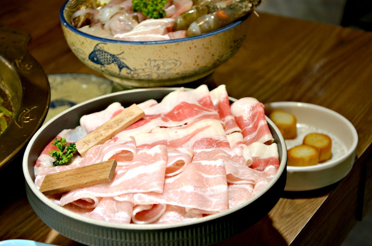 這次最喜歡的肉品是松阪豬。放進湯裡涮一下,口感脆又Q,吃起來完全不油膩,甚至連煮久一點都不會變硬。雪花牛偏向安全牌,油脂剛好,丟進鍋裡吸滿湯汁香氣也好吃。整體肉品雖然不花俏,但以這價位來說算穩又耐吃。