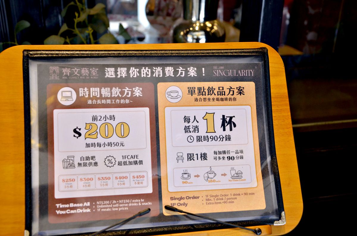 齊文藝室共享空間咖啡廳的費用選項很彈性,可以買三小時、五小時,也有一整天的方案。如果是固定會來工作的人,加入會員的折扣會更划算。以北車周邊的地段來說,能有這麼好的設備、這麼放鬆的氛圍,加上無限續杯和外食自由,換算下來其實很超值。