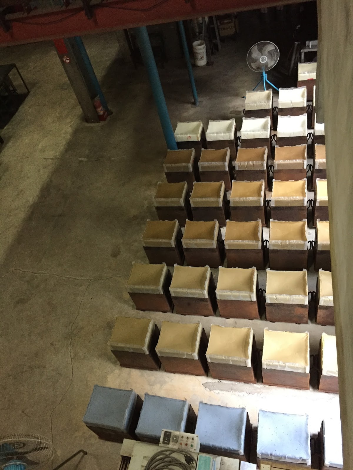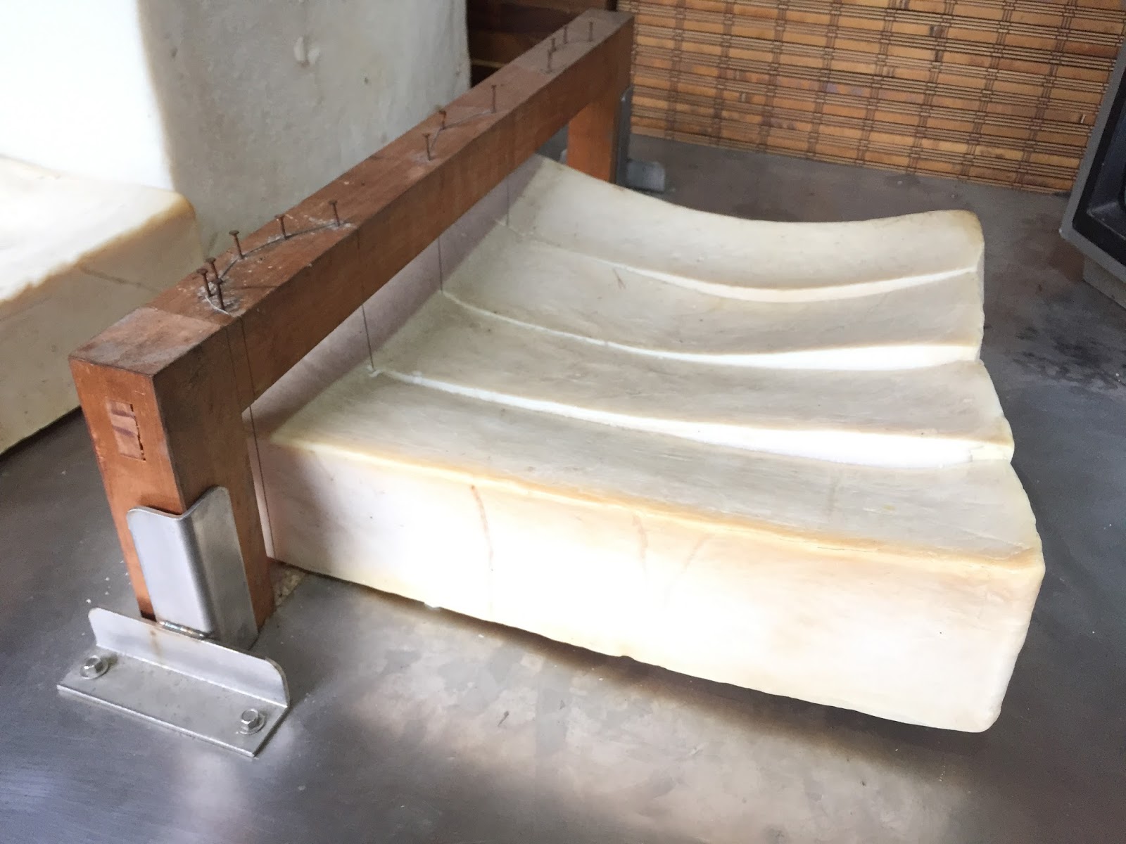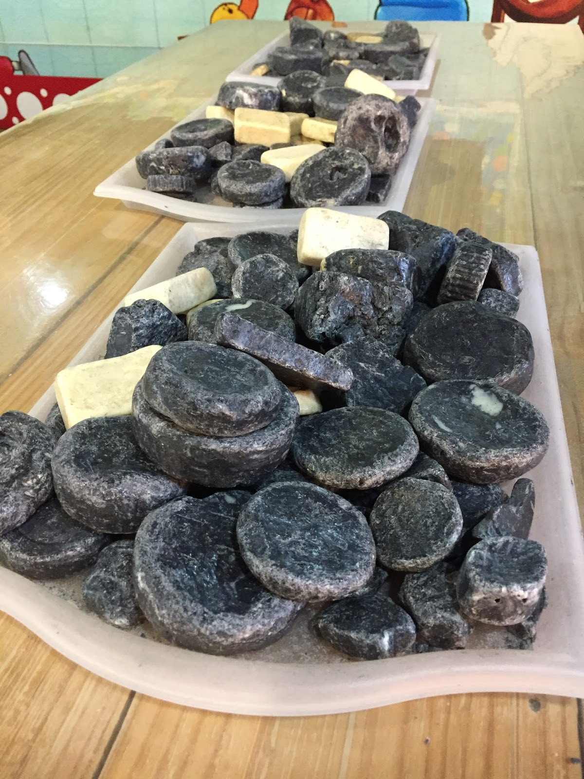 下面一格格像豆腐一樣整齊排列的是正在晾乾的手工皂