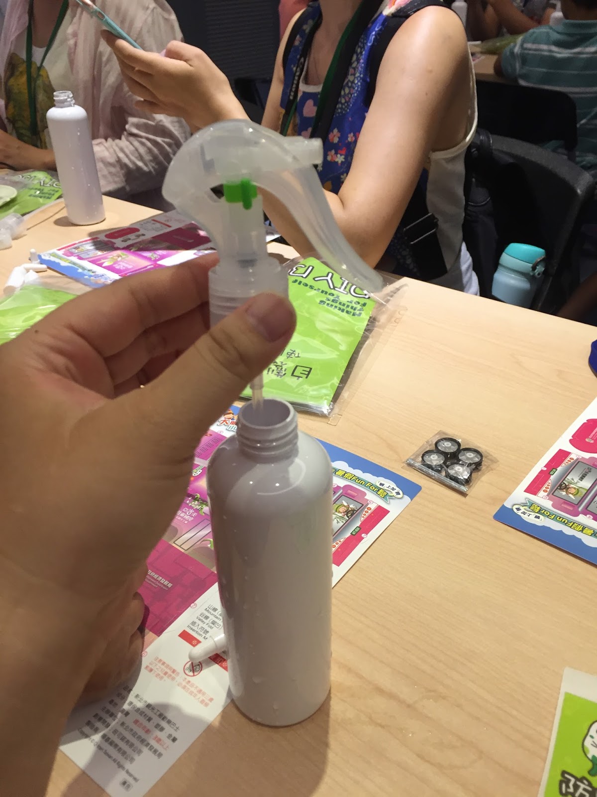 製做的方式真的很簡單!!! 拿出你的左手和右手就可以搞定的!!!把館方準備的兩款精油 — 香茅與薰衣草 分別倒入裝滿清水的瓶中!!